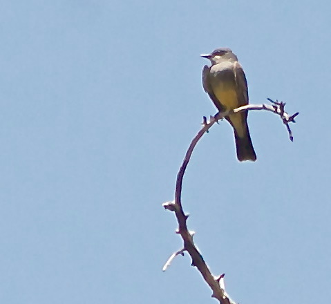 Both VERMILION FLYCATCHER and CASSIN'S KINGBIRD were out and about snatching insects from the air. Tending to alight on high open branches, they were difficult to bring into focus on the new camera I'm using for the first time.